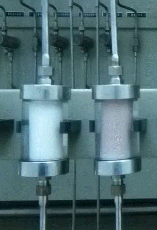 改造前:全不锈钢离子交换柱,不能直观树脂颜色的变化,不能及时知晓树脂是否失效
